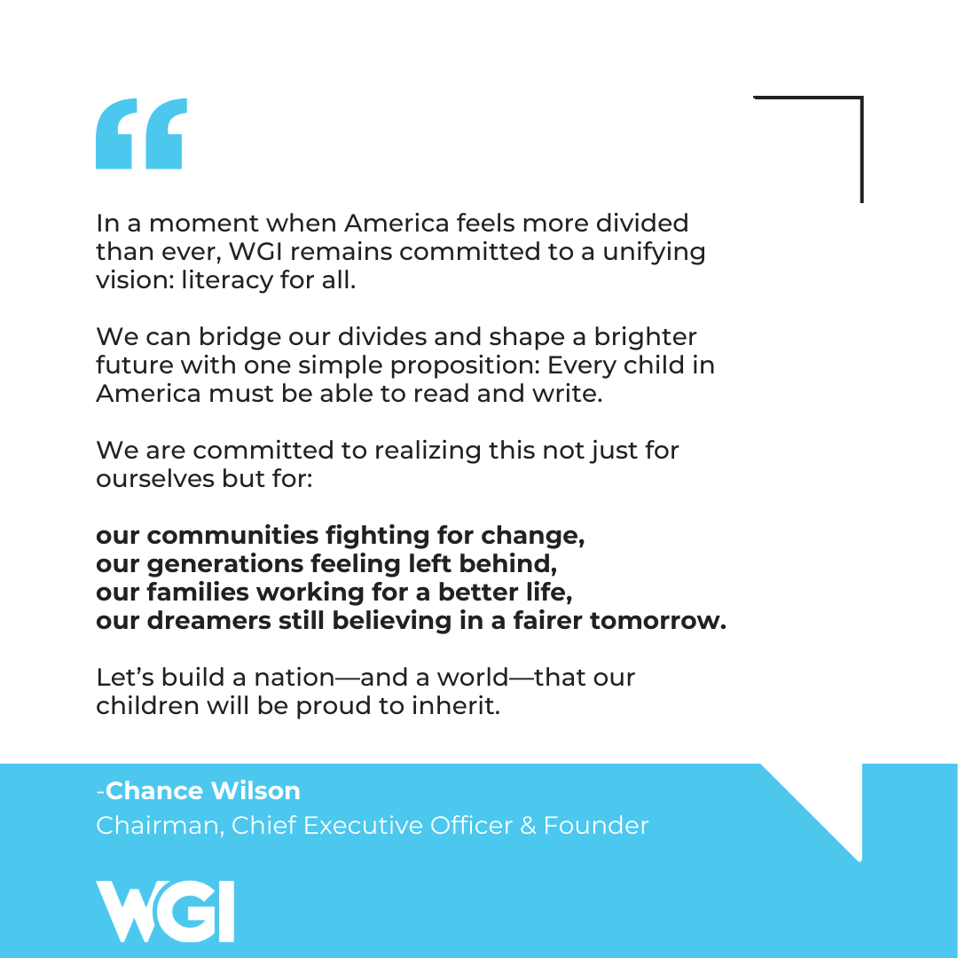 In a moment when America feels more divided than ever, WGI remains committed to a unifying vision: literacy for all.