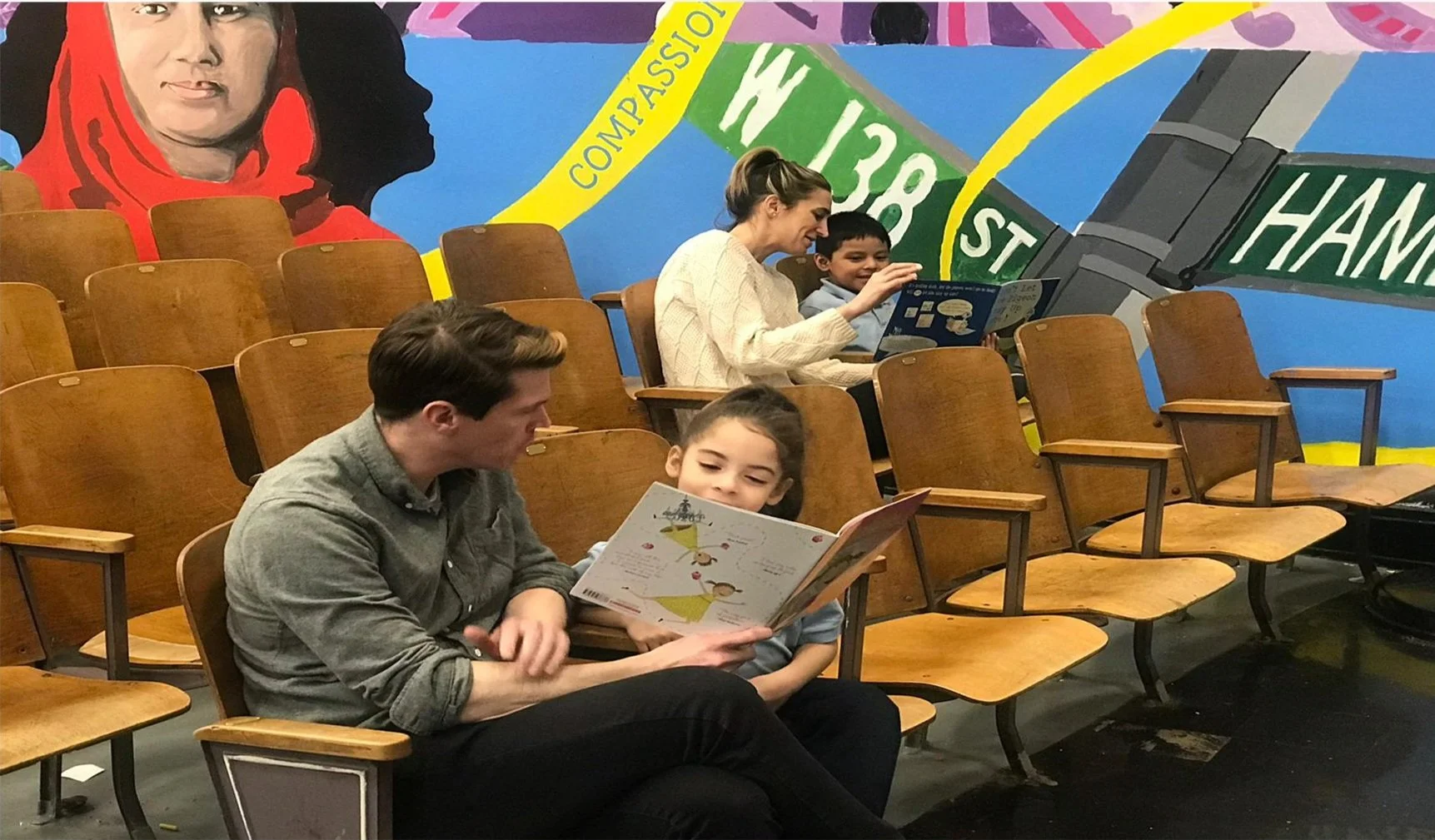 A volunteer reads to a student at WGI’s program at PS 192 in Harlem.
